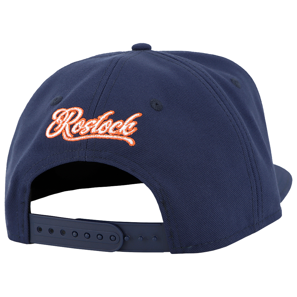 Die dunkelblaue Snapback kommt mit einem auffälligen Greif-Design auf der Vorderseite daher, welches den Rostocker Greifen und die Hansa-Kogge, umrandet von einem blauen und roten Ährenkranz, perfekt vereint.